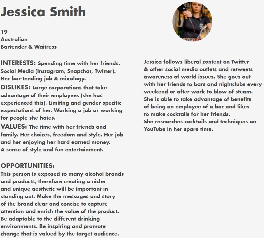 ‘Elixir’ is one brand out of three that are under a larger master brand. The Master Brand is a distillery ran by women that has the purpose of empowering other women to, discover and embrace their power, be the protagonist of their own stories. This comes in the form of high-end Absinthe. Due to research into alcohol drinking trends by gender and age, the target audience are young women (aged 18-29) who are more likely to enjoy liquors and spirits (especially pre-mixed). These women are working full-time or part-time to support themselves and have an invested interest in modern values (such as Feminism). They seek out a night out as a form of escapism with friends.